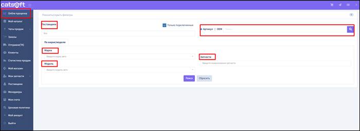 В данном модуле доступен поиск запчасти сразу по всем поставщикам. Доступен поиск по ОЕМ номеру детали, внутреннему артикулу CatSoft, марке / модели авто и наименованию запчасти.